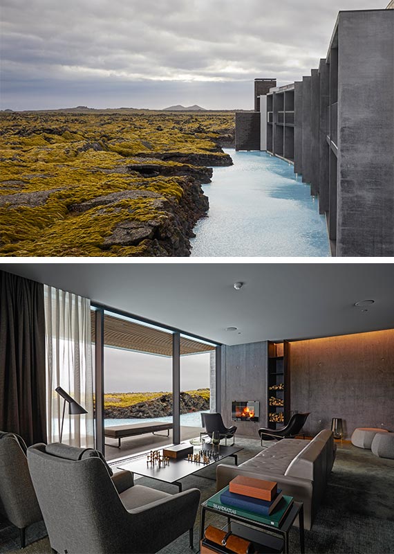 The dramatic backdrop of Iceland’s Blue Lagoon, near Grindavik, makes an unforgettable setting for a truly special escape. Just 50 minutes from Reykjavik and 20 minutes from Keflavik Airport, The Retreat immediately immerses guests in Iceland’s ethereal beauty; I feel like I’ve been transported to the set of Moonraker. The hotel sits magnificently next to the bright waters of the Blue Lagoon, but before we dip our toes in, we sip on Champagne in front of an open fire in the huge lobby, gaping in wonder through the floor-to-ceiling windows at the lunar landscape that surrounds us.